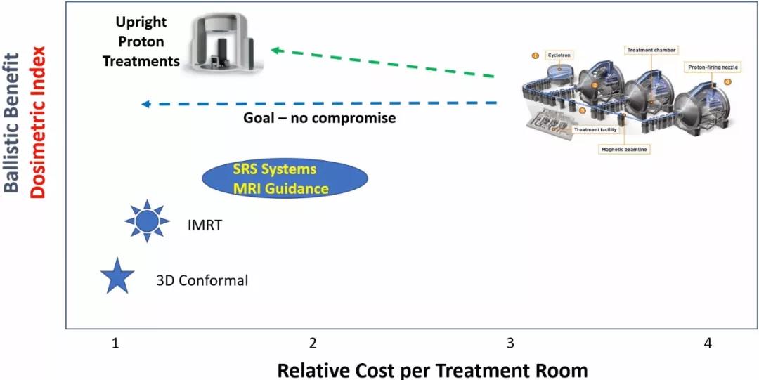 Rockwell Mackie教授表示,降低屏蔽建筑體積也是降低離子治療系統(tǒng)的一個(gè)重要部分。目前的緊湊型單室治療系統(tǒng)并非如想象中的“緊湊”,所需的屏蔽體積仍然較大,并不一定能安裝在所有的傳統(tǒng)放療科室內(nèi);若單純安裝立式放療系統(tǒng),則可以安裝在傳統(tǒng)放療科室內(nèi)。