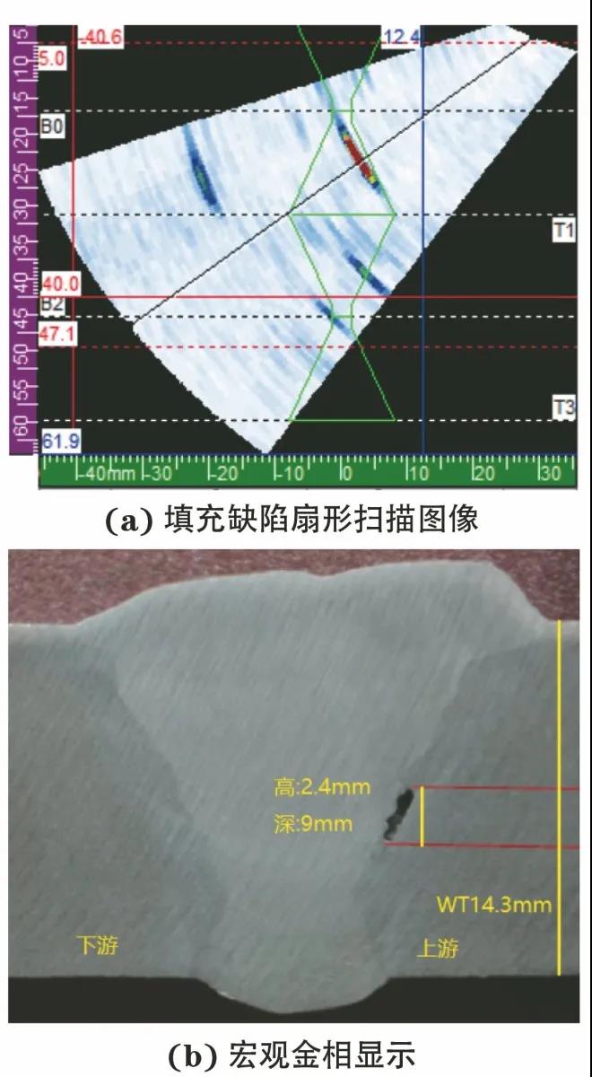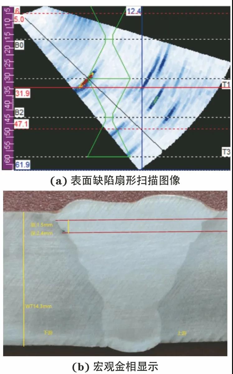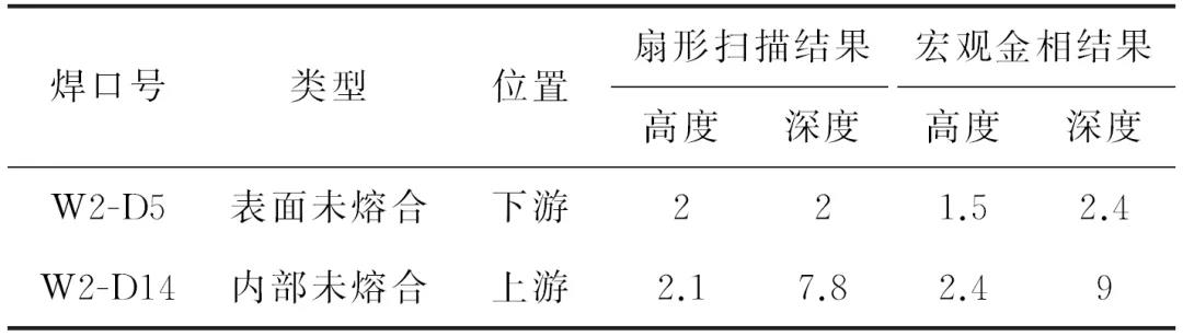 1 相控陣超聲扇形掃描工藝能有效檢測出焊縫中不同位置的缺陷,并可對缺陷的高度、深度進(jìn)行精確定量。