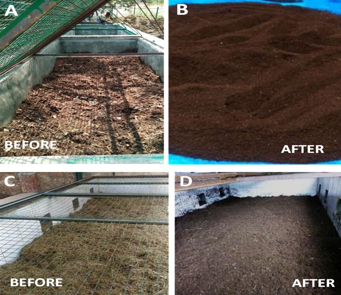 使用BARC配方對廚房垃圾(上圖)和椰子葉進(jìn)行堆肥