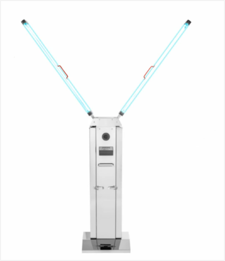 該產品擁有單臂或雙臂兩個版本。其中,單臂消毒車達到99.9%的滅活率需30分鐘;雙臂消毒車達到99.9%的滅活率需15分鐘。消毒面積隨消毒時長增加而擴大。