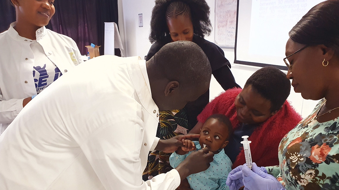 使用穩(wěn)定同位素技術(shù)進(jìn)行唾液采樣以評估人體成分。(照片:V。Owino /國際原子能機(jī)構(gòu))