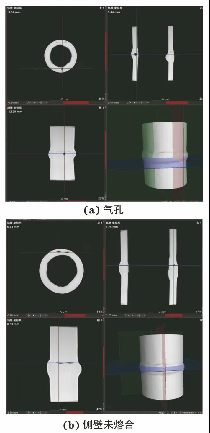 圖3 樣管A焊接缺陷(氣孔、側壁未熔合)的三維重構結果