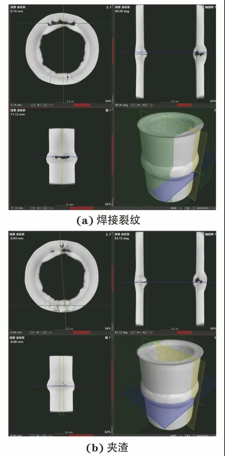 圖4 樣管B焊接缺陷(夾渣、焊接裂紋)的三維重構結果