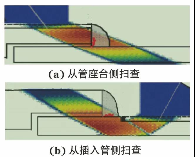 03 由于支管臺尺寸的多樣性,插套焊存在僅單側可進行超聲掃查的情況;即使雙側可進行超聲掃查,也存在檢測聲束難以有效覆蓋檢測區域、缺陷主平面聲反射率低的問題,易漏檢;