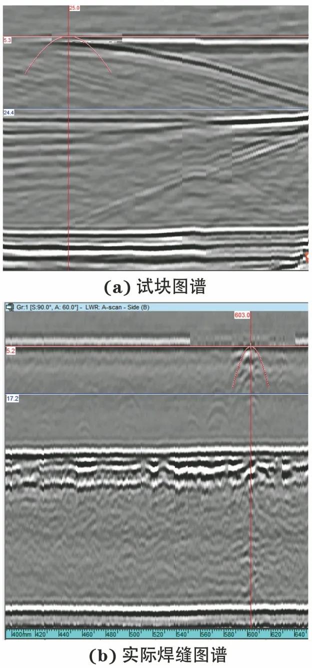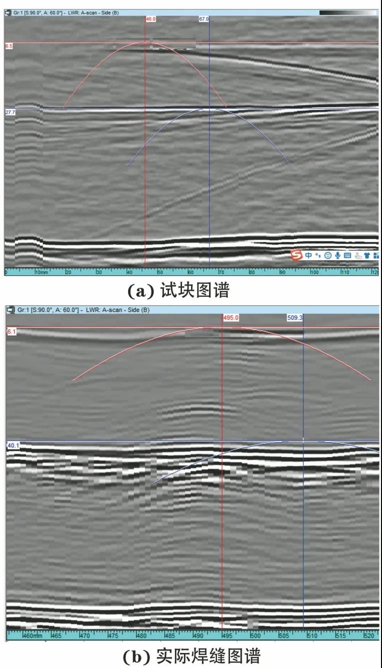 圖2 新型TOFD掃查面盲區(qū)對比試塊檢測圖譜