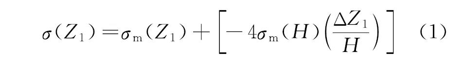 式中:σ(Z1)為修正后應(yīng)力;σm(Z1)為減薄后應(yīng)力測試值;σm(H)為減薄前應(yīng)力測試值;ΔZ1為剝層厚度;Z1為減薄后的厚度;H為原始厚度。