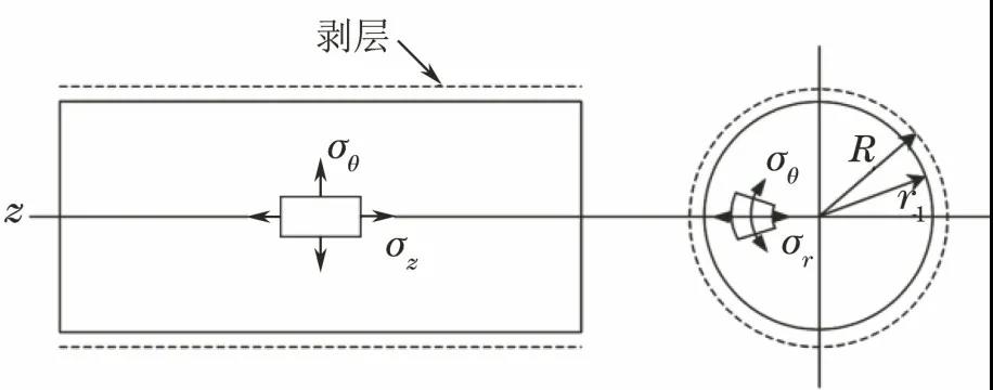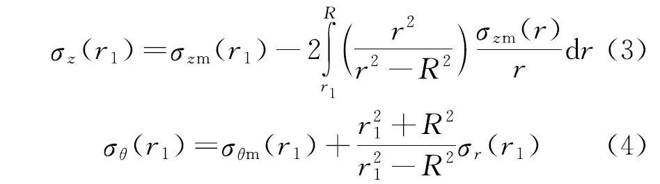式中:r1為減薄后的半徑;R為原始半徑;σr(r1),σz(r1)和σθ(r1)分別為半徑為r1處修正后的徑向、軸向和切向應(yīng)力;σθm(r)和σzm(r)分別為半徑為r處單元體的切向應(yīng)力與軸向應(yīng)力;σzm(r1)和σθm(r1)別為半徑為r1處軸向和切向的應(yīng)力測量值。