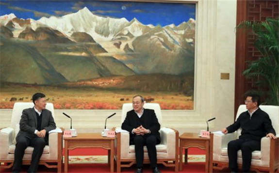 云南省委書記阮成發(fā)、代省長王予波會見中國載人航天工程領(lǐng)導(dǎo)王兆耀一行,并共同見證簽約。記者 陳飛 攝