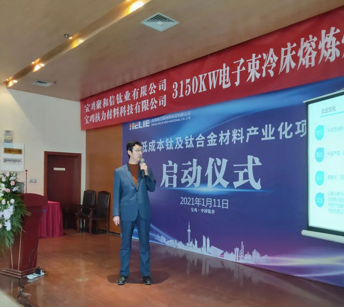 青海聚能鈦業(yè)總經(jīng)理張科全發(fā)言,首先向今天參會的領導和來賓問好,并講到青海聚能鈦業(yè)公司幾年前引進一臺俄羅斯EB爐,通過吸收、研發(fā)創(chuàng)新,與俄羅斯KV-TItaniu Ltd合作,成立EB爐國產(chǎn)化技術制造團隊,成功為公司制造一臺EB爐,通過近幾年的使用,性能良好。公司在寶雞成立聚合信鈦業(yè)公司,使青海聚能鈦業(yè)能更好的與中國鈦谷以及國內鈦產(chǎn)業(yè)兄弟企業(yè)融合發(fā)展,合作共贏。這次公司與寶雞核力新材公司合作,承接制造他們所需要的EB爐,也是公司為國內鈦企業(yè)提供國產(chǎn)化EB爐制造的實際案例。他表示公司有能力、有信心、保質按期交貨,并作好后期的安裝調試使用等一系列服務工作。