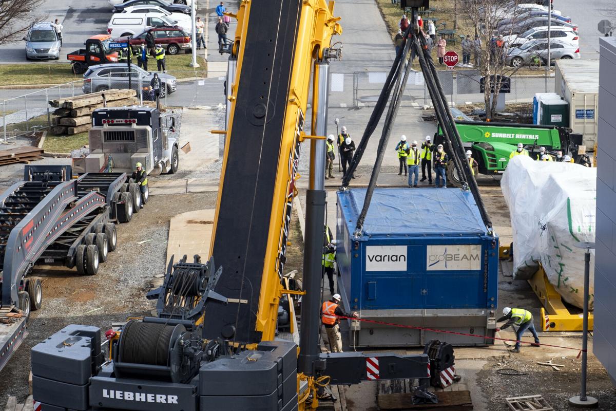 20軸卡車將回旋加速器運(yùn)送到位于哈里斯堡派克的Ann B. Barshinger癌癥研究所。回旋加速器是健康中心質(zhì)子中心的三個(gè)基本部件之一,質(zhì)子中心定于2022年完工。