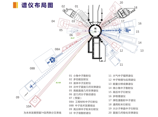 中子譜儀是利用中子探測物質微觀結構與運動的實驗裝置。CSNS共規劃了20臺譜儀,包括目前一期已經開放運行的通用粉末衍射儀、小角中子散射儀、多功能反射儀,以及正在建設或籌劃建設的多物理譜儀、大氣中子輻照譜儀、工程材料中子衍射譜儀等。