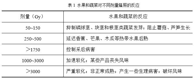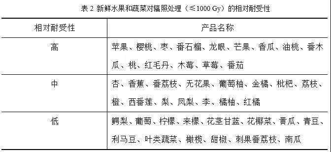 表1和表2是根據已有的研究報道總結出的水果和蔬菜輻照耐性,供大家參考。