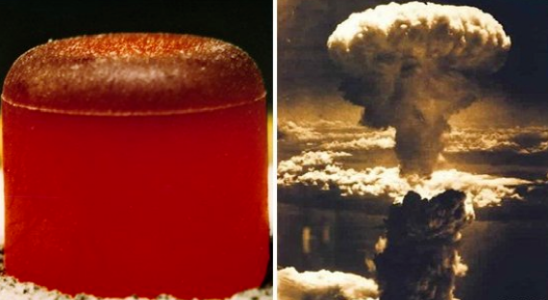 圖注:RTG中使用的是二氧钚(钚-238),放射性衰變使其變得非常熾熱(左)。1945年美國投擲到日本長崎的原子彈升起的蘑菇云(右),該原子彈的代號為“胖子”,使用的核燃料為钚-239。