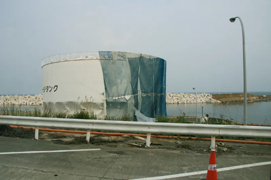 福島現場的一個液體儲存罐,在事故中發生了變形扭曲,拍攝于 2011 年 10 月。