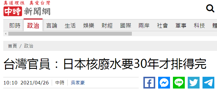 日本日前宣布福島核電站核污染水將排放入海引發關注。據臺灣中時新聞網4月26日報道,臺經濟部門所屬的“國營事業委員會”執行長劉明忠26日透露,日本已對外表示,核污染水可能要30年才排得完。