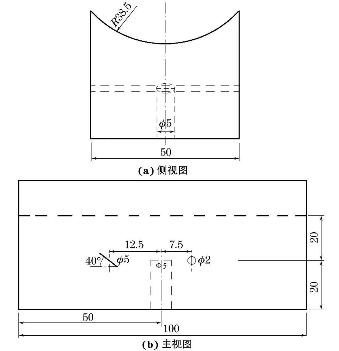 當c1<c2時,聲透鏡具有聚焦作用,其焦距f為:f=r/[(c2/c1)-1] 式中:r為透鏡的曲率半徑。 此外,耦合劑層很薄時,透鏡與工件的聲強透射率T可簡化為:T=4Z1Z2/(Z1+Z2)2 式中:Z1為楔塊的聲阻抗;Z2為工件的聲阻抗。 軸線上x處的折射波聲壓Px為:Px=tP0 [ |f/(x±f)| ]1/2 式中:P0為頂點處入射波的聲壓;t為聲壓透射率;f為焦距;x為從折射波源算起的距離。 2 相控陣超聲CIVA建模與仿真研究 針對Φ89mm×6mm(直徑×壁厚)規格的管座角焊縫,按照上述延時法則,利用CIVA軟件模擬帶凸面透聲楔塊的相控陣探頭在工件內部形成的聲場。傳感器型號為5P64-1.0-10,激勵陣元數為16,楔塊材料為聚苯乙烯,楔塊厚度15mm,小徑管規格為Φ89mm×6mm,掃描類型為電子線垂直掃描(焦距20mm),電子線偏轉掃描(角度30°)。 相控陣超聲軸向和周向聲場聚焦的仿真結果如圖4所示,其中軸向平面由于相控陣直接聚焦,產生的聲場較強,而周向聲場則依靠上述楔塊和曲面的耦合特性獲得了一定程度的聚焦,可見所設置的檢測參數能使聲束在試樣內獲得較好的聚焦效果。 為研究帶凸面楔塊的相控陣探頭對缺陷檢測的可靠性,對相控陣探頭和凸面楔塊對人工缺陷的反射聲場進行建模分析,相控陣晶片沿圓弧曲面軸向布置。缺陷試樣結構如圖5所示,其上表面為曲率半徑為38.5mm的圓弧凹面,該試樣共包含有3處缺陷,中間為Φ5mm的平底孔缺陷,以模擬未焊透和接管側的未熔合缺陷;左邊為傾角為40°的Φ5mm圓盤,以模擬容器側的未熔合缺陷;右邊為Φ2mm×50mm側鉆孔,以模擬條狀缺陷。如果不考慮焊縫與母材的聲學特性差異,建模分析中可用圓弧凹面試樣代表管座角焊縫結構。 人工缺陷的CIVA聲場仿真和波形幅值圖像如圖6所示。可以看出電子線垂直掃描結合30°偏轉掃描(30°以上偏轉縱波分量下降很快,且容易產生柵瓣),對不同類型的人工缺陷進行檢測,能獲得較清晰的超聲圖像,可直觀地顯示缺陷的位置、分布、尺寸等信息。 3 檢測試驗 為驗證提出的檢測方法的可靠性,加工了管座角焊縫對比試塊,試塊上加工有橫孔、平底孔、表面切割槽等人工缺陷。 采用上述帶凸面楔塊的相控陣探頭進行檢測,結果如圖9所示,可以看出凸面楔塊的相控陣探頭對管座角焊縫對比試塊不同位置和類型的人工缺陷均有較好的檢測效果。 在管座角焊縫對比試塊檢測試驗的基礎上,加工了管座角焊縫缺陷試樣,試樣實物如圖10所示,其中1號試樣規格為Φ89mm×6mm,包括未熔合和裂紋缺陷;2號試樣規格為Φ89mm×6mm,包含夾渣和裂紋缺陷。 采用帶凸面楔塊的相控陣探頭進行檢測,檢測時,將焦點設置在角焊縫外側熔合線外5mm處(考慮熱影響區的缺陷),對體積型缺陷和與表面平行的面積型缺陷,采用電子線垂直掃描方式;對與表面有一定傾角的面積型缺陷,采用一定角度的電子線偏轉掃描方式,設置掃描角度使聲束與缺陷方向大致垂直,以甘油作為超聲耦合劑施加在檢測表面(甘油的聲阻抗與聚苯乙烯相差很小),將相控陣探頭的凸面楔塊沿軸向緊貼管道內表面,并沿著接管圓周方向移動探頭,觀察圖像的變化情況,以判斷角焊縫的輪廓位置。 管座角焊縫缺陷試樣典型缺陷的相控陣超聲檢測結果如圖11所示,可以看出這種帶凸面楔塊的相控陣超聲技術對管座角焊縫試樣不同位置和類型的夾渣、未熔合、未焊透、裂紋等典型缺陷均有較高的檢測能力,并能直觀地顯示缺陷的位置、分布、尺寸等信息。 4 結語 (1) 提出的帶曲面楔塊的相控陣超聲檢測技術,通過設置與接管曲率相匹配的透聲楔塊,改善了界面耦合效果,同時透聲楔塊相當于凸面聲透鏡,在圓周方向上有一定的聲束聚焦作用。 (2) 從CIVA仿真結果可以得出,帶曲面楔塊的相控陣超聲探頭形成的聲場在焦點處的聚焦效果很好,只產生了輕微的旁瓣,對不同類型的缺陷均能獲得較清晰的超聲檢測圖像。 (3) 提出的帶曲面楔塊的相控陣超聲技術對管座角焊縫不同位置和類型的人工缺陷以及夾渣、未熔合、未焊透、裂紋等典型缺陷均有較高的檢測能力,并能直觀地顯示缺陷的位置、分布、尺寸等信息。