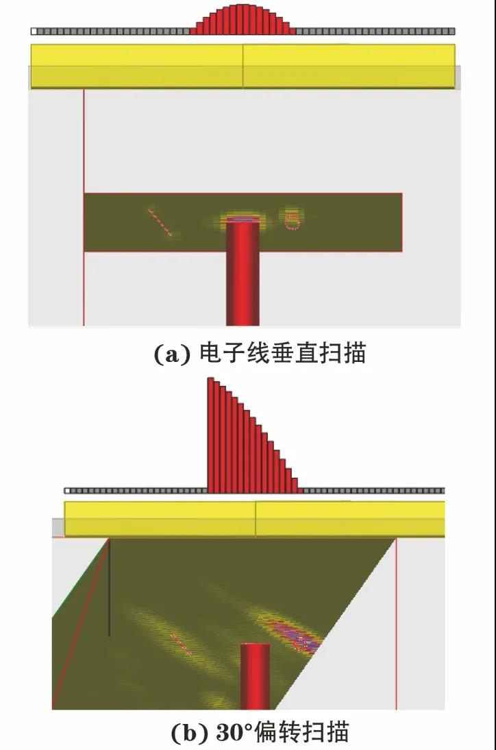 圖2 楔塊/鋼兩層介質電子線垂直聚焦和偏轉聚焦示意