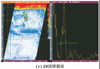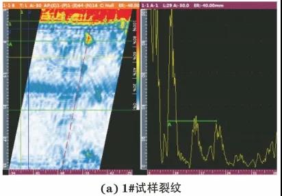 圖11 管座角焊縫缺陷試樣典型缺陷的相控陣超聲檢測結果