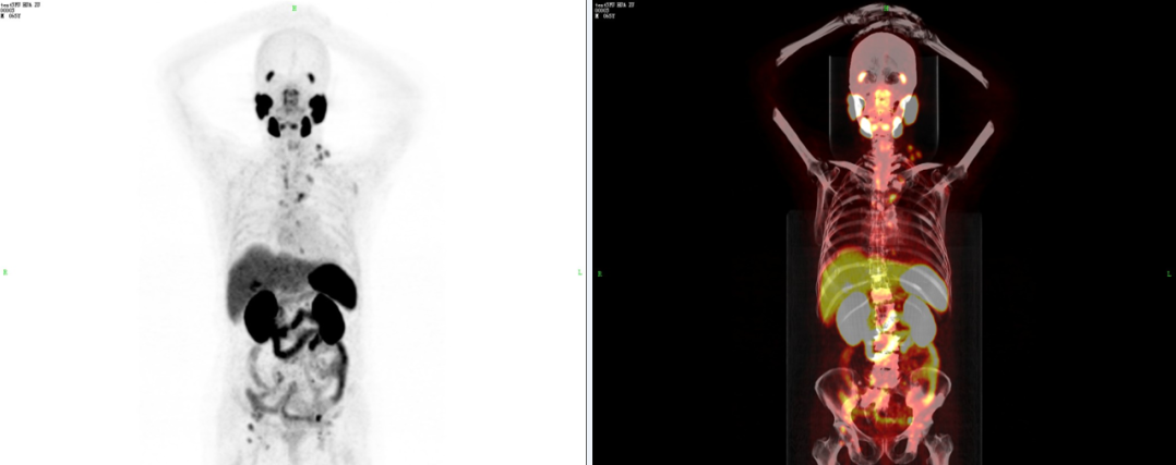 PSMA PET/CT不僅可以應用于初診前列腺癌的臨床分期,也可以用于前列腺癌根治性治療以后,生化復發的病灶定位診斷。比如說前列腺癌根治術后生化復發,可以評估是局部復發、淋巴結轉移,還是遠處轉移。這對于患者和治療醫生來說這無疑是強而有力的“偵察支持”可顯著提高治療效果。所以PSMA PET/CT對于前列腺癌高危人群來說是一種“精準福音"!