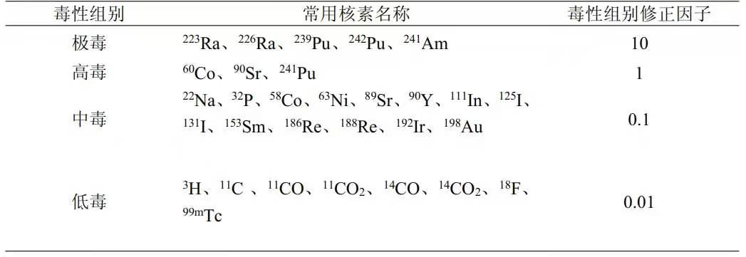 第一個修正因子是毒性組別,主要是根據該放射性核素進入體內后可能引起的損傷效應的大小來分類的2。