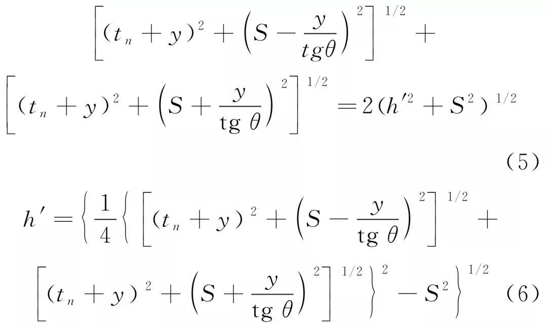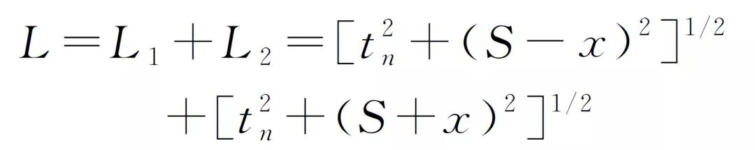按前述原則建立模擬等腰三角形af′b,則模擬路徑聲程L′=L′1+L′2=2(h′2+S2)1/2,可得:
