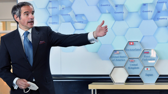 2021年6月7日,在奧地利維也納原子能機構總部舉行的1579次理事會會議上,總干事拉斐爾·馬里亞諾·格羅西號召在ReNuAL2:為科學而建,為未來而設計閉幕會議上合影。