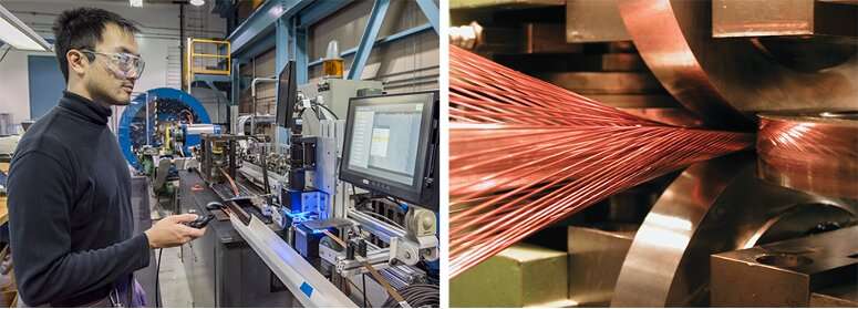 HL-LHC AUP聚焦磁鐵的線圈由銅基中的先進(jìn)鈮錫(Nb3Sn)超導(dǎo)體制成。伯克利實(shí)驗(yàn)室的關(guān)鍵貢獻(xiàn)之一是制造所有用于磁體的電纜。這項(xiàng)任務(wù)在2021年1月達(dá)到了一半的目標(biāo)。