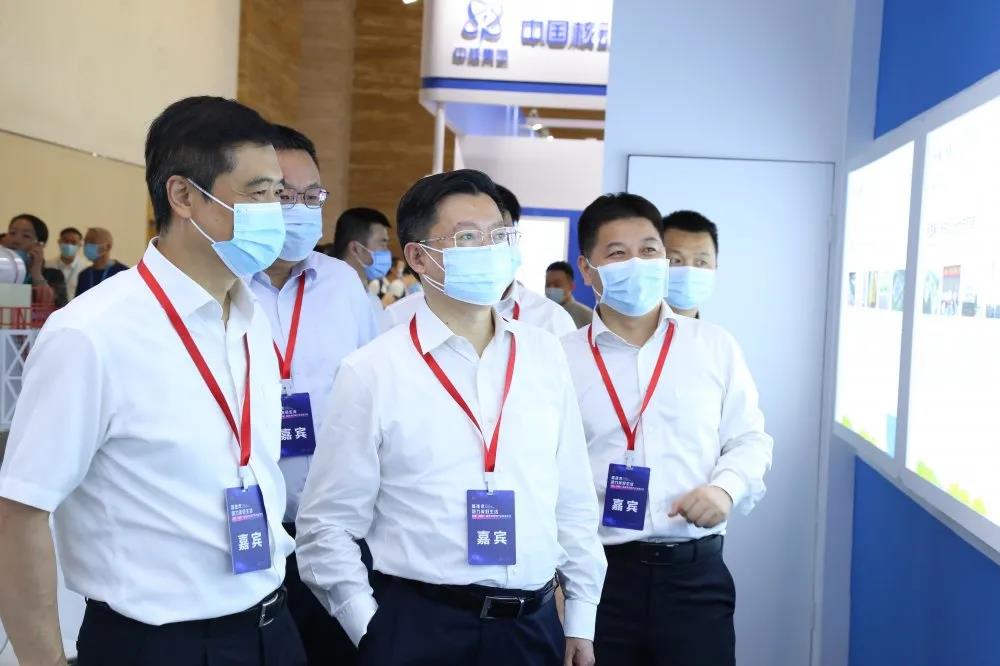 △國家原子能機構副主任張建華(左二)到中廣核技展臺參觀,中國廣核集團總經理助理陳遂(左一)陪同