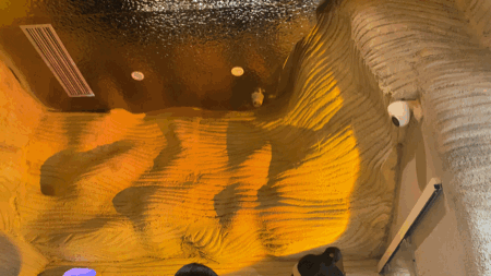 店內這種造型特別的墻壁,可都是模擬洞穴用3D打印技術打印之后拼裝而成的。