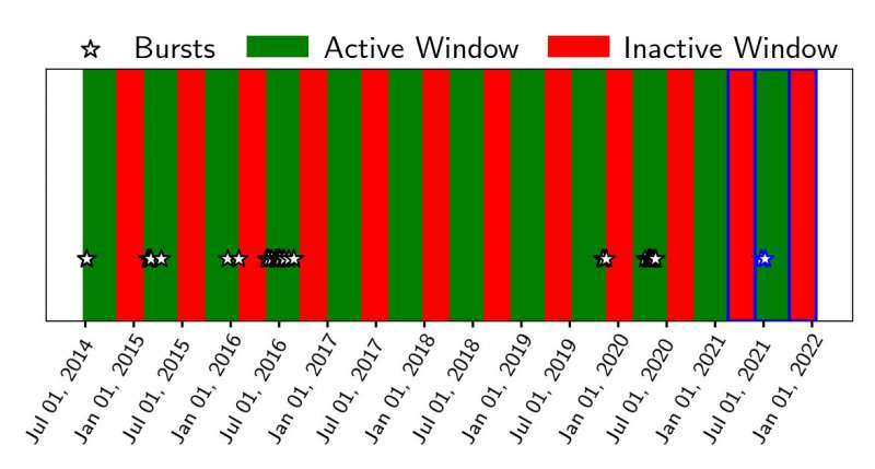 “到目前為止,我們已經觀察到自 2014 年以來超過 10 個窗口期的爆發,雖然我們認為它是周期性窗口期,但它實際上是隨機的,概率為 10,000 分之三,”他說,這意味著他們有 99.97% 的機會是正確的. 他指出,蒙特卡羅模擬表明,他們看到一種并不真正存在的模式的可能性可能遠低于十億分之一。