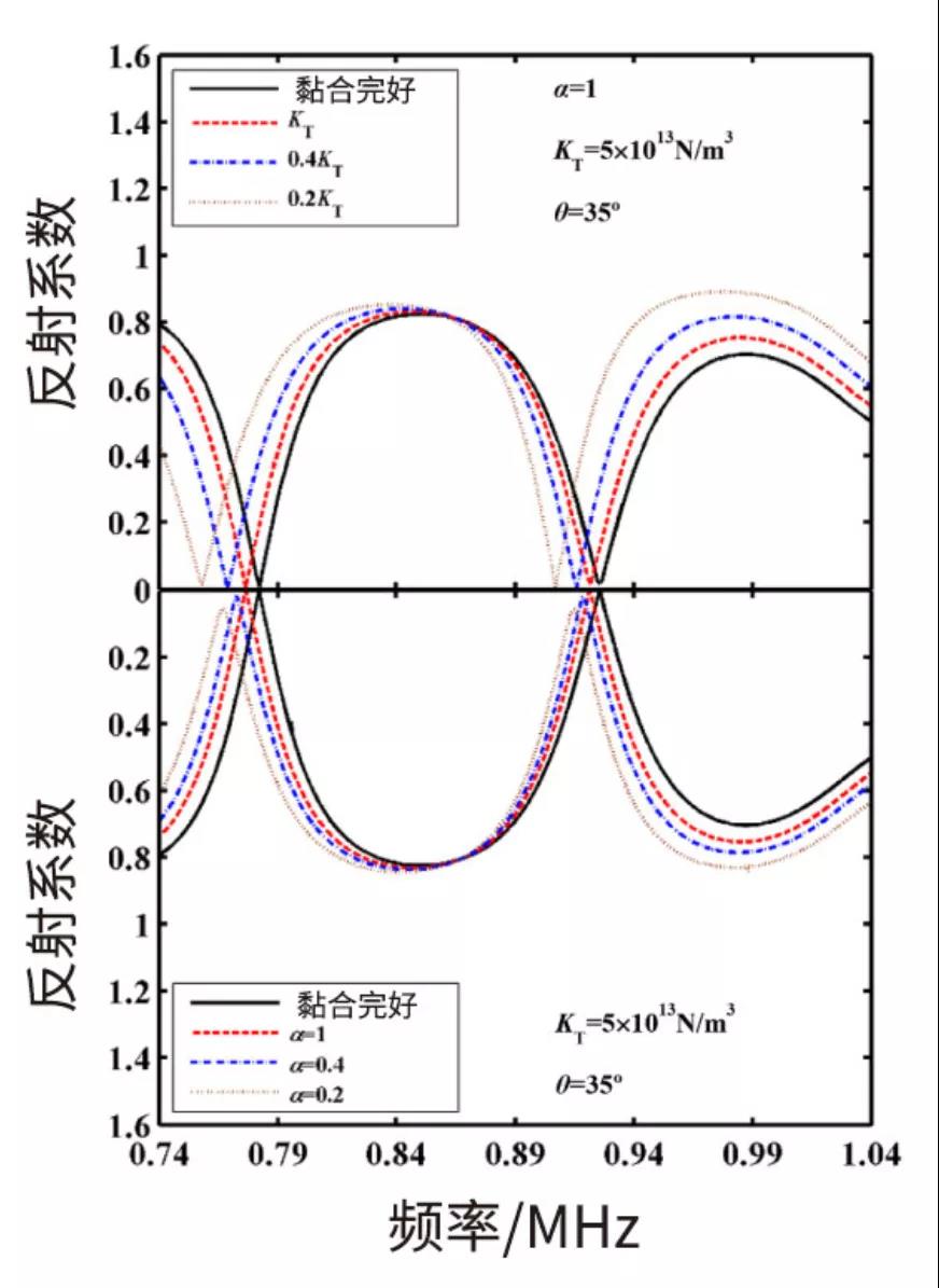 圖16 雙黏接界面弱化時的超聲反射系數頻譜
