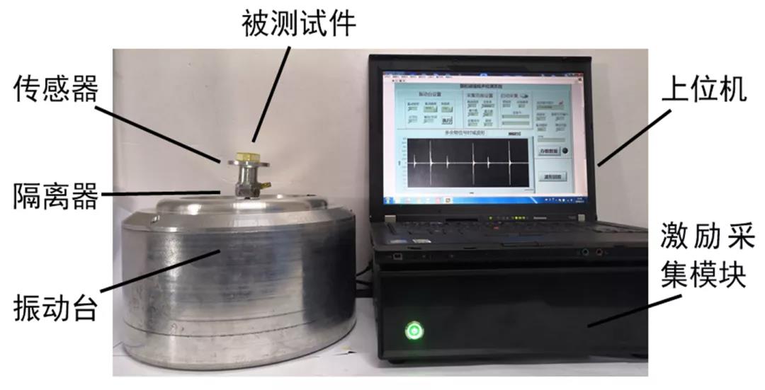 針對現有顆粒碰撞噪聲檢測(PIND)系統存在的檢測精度低、誤判漏判率較高、不能實時判斷內部多余物材料等問題,提出了一種基于神經網絡的多余物自動檢測與識別方法,研制了密封電子器件多余物自動檢測系統(見圖19)。該系統采用大功率電磁式振動臺為多余物檢測提供振動激勵,利用多通道融合傳感器采集碰撞噪聲信號,通過高速數據采集系統將信號傳遞至上位機。上位機采用短時能量門限檢測法提取信號脈沖;提取多種時頻域特征,并與小波域特征相結合;通過訓練多輸出的神經網絡預測模型自動判斷被測件內部是否存在多余物顆粒,并自動給出多余物材料信息。試驗結果表明,該系統判斷質量為0.1mg以上多余物有無的準確率可達99%,對多余物材料識別的準確率可達91%。