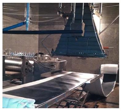 壓延后正常存放的胎體簾布和壓延后經過電子束輻照預硫化的胎體簾布。