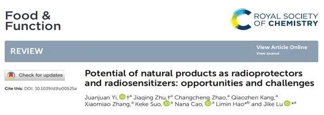 本文總結了近年來主要的天然輻射防護劑和輻射增敏劑,包括多酚、多糖、生物堿、皂苷等化合物,對其輻射防護/輻射增敏作用及相關機制進行總結討論,并探討了它們目前應用的不足之處和未來的改進方向,闡明了它們在未來臨床及食品開發領域的應用前景。