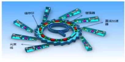 同步輻射是接近光速的帶電粒子在磁場中沿弧形軌道運(yùn)動(dòng)時(shí)放出的電磁輻射,1947年人類在電子同步加速器上首次觀測到這種電磁波,稱其為 “同步輻射”。同步輻射具有從遠(yuǎn)紅外、可見光、紫外到X射線范圍內(nèi)的連續(xù)光譜、高強(qiáng)度、高度準(zhǔn)直、高度極化、特性可精確控制等優(yōu)異性能的脈沖光源,可應(yīng)用于物理、化學(xué)、材料科學(xué)、生命科學(xué)、信息科學(xué)、力學(xué)、地學(xué)、醫(yī)學(xué)、藥學(xué)、農(nóng)學(xué)、環(huán)境保護(hù)、計(jì)量科學(xué)、超微細(xì)加工等眾多前沿微觀科學(xué)技術(shù)研究。同步輻射光源是產(chǎn)生同步輻射的物理裝置。同步輻射裝置的建造及在其上的研究、應(yīng)用,經(jīng)歷了三代的發(fā)展。由國家發(fā)展改革委立項(xiàng)支持、中科院高能物理研究所承建的高能同步輻射光源(HEPS),是國家“十三五”重大科技基礎(chǔ)設(shè)施項(xiàng)目之一,于2019年6月29日在北京懷柔科學(xué)城開工建設(shè),2021年6月28日首臺(tái)科研設(shè)備安裝,將于 2025年底驗(yàn)收并投入運(yùn)行,建成后將是中國第一臺(tái)高能同步輻射光源,也將是世界上最亮的第四代同步輻射光源。它的整體建筑外形似一個(gè)放大鏡,寓意為探測微觀世界的利器。