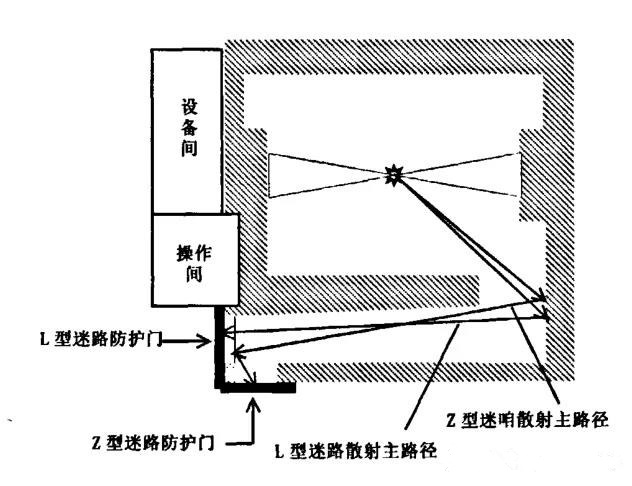 迷路通道設計能夠有效降低治療室出入口的輻射水平,目前,在治療室迷路設計這一塊主要有L型迷路和Z型迷路通道設計,在國內絕大多數機房設計時候采用的是L型迷路通道,但是迷路寬、通道內口大,容易導致散射射線到達出入口,對于迷路通道的設計盡可能減少寬度、增加長度,但同時滿足機器的進場要求。Z型迷路通道比L型迷路通道更能有效降低散射線,但是制造難度也更高。另外,機房的管道防護也是值得關注,相比于四周嚴實的墻體防護,屋頂的管道有通風管、電纜線等管道,在這些管道測量的射線劑量偏高,需要關注。
