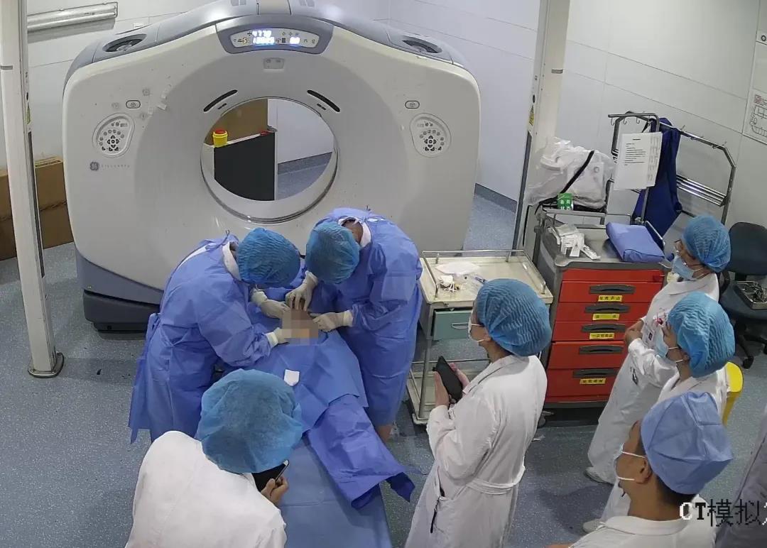據了解,患者是一位58歲女性,針對該名患者的具體病情,史鴻云教授團隊在進行綜合評價后決定行CT引導下3D打印輔助下的左側腹股溝腫物組織間插植治療。8月10日下午,史鴻云教授團隊全部到位,在史鴻云教授和首席醫師苑蘭惠的指導下,物理師宋哲倫操作CT模擬機進行圖像引導,醫師孫曉靜、張新將3D打印模板固定在患者體表,而后進行了插植鋼針的置入,整個過程僅用時45分鐘,經確認插植鋼針成功均勻置入患者體內的腫瘤區內。之后,史鴻云教授、首席醫師苑蘭惠指導在患者的定位CT影像上進行了治療靶區勾畫,物理師李乾、齊肖璐、劉方玉設計制作了相應的治療計劃,對患者進行了治療,本次插植治療后裝放射源在置入患者腫瘤區的四個駐留通道內精準的完成了治療,取得了后裝插植治療方面的新突破,治療手段和水平皆達到了國內放射治療領先水平。