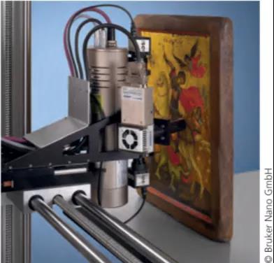 將畫作放置在光譜儀前面后,高倍相機(具有固定焦點)的圖像將幫助對準光譜儀,與畫作保持合適的距離。低倍相機掃描感興趣圖像上的整個區域,并由Bruker Nano公司開發的定制圖像軟件創建一幅拼接的概覽圖像。