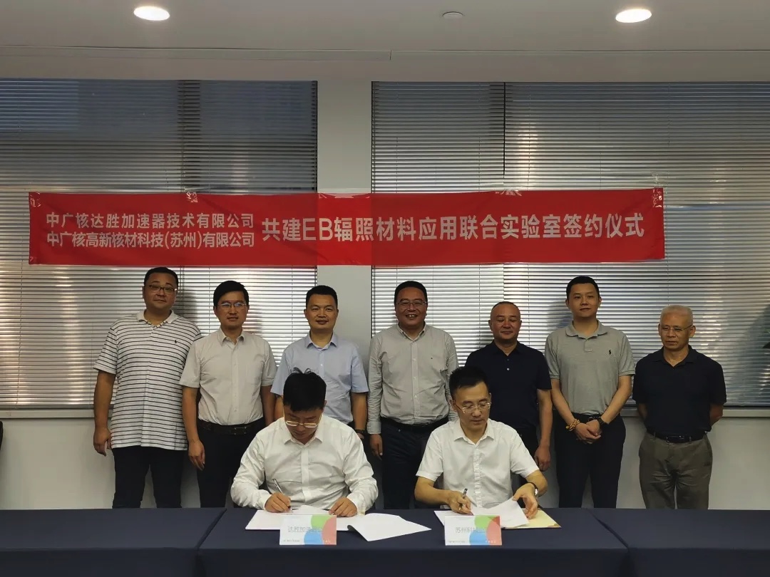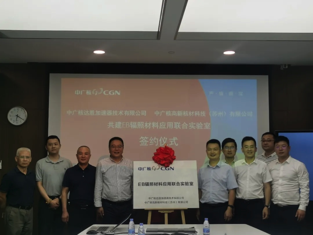 8月23日,中廣核達勝加速器技術有限公司(簡稱“中廣核達勝”)與中廣核高新核材科技(蘇州)有限公司(簡稱“中廣核(蘇州)科技公司”)共建電子束(EB)輻照材料應用聯合實驗室簽約儀式在蘇州太倉舉行,中廣核技黨委委員、副總經理、中廣核達勝總經理王西坡,中廣核高新核材黨委書記、董事長、總經理李金甌,中廣核達勝黨總支書記、總經理助理樂觀等出席簽約授牌儀式,儀式由中廣核高新核材黨委委員黃志杰主持。