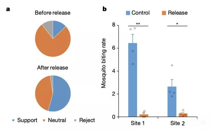 最開始的時候要往居住區釋放大量蚊子,當地居民很少有表示贊成的。