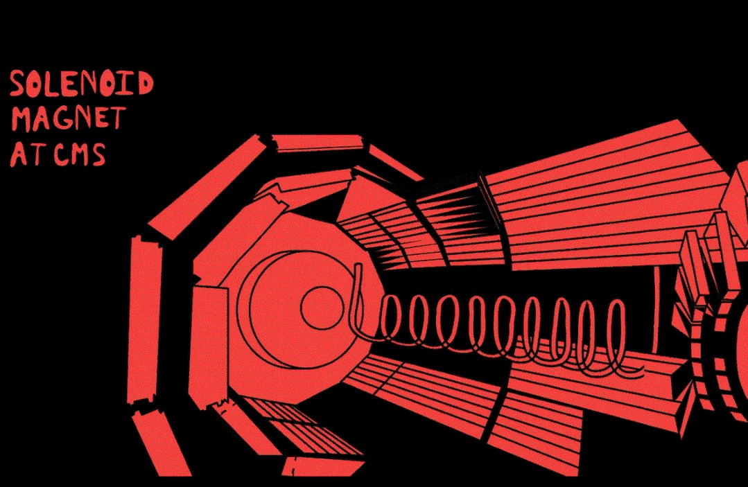 在CMS的核心,有一個(gè)巨大的線圈磁鐵,這是有史以來同類磁鐵中最大的。利用其強(qiáng)電磁場(chǎng)結(jié)合徑跡探測(cè)器,CMS可以精確測(cè)量帶電粒子例如電子,繆子的動(dòng)量信息。而與之相對(duì)的,ATLAS沒有這么強(qiáng)大的線圈磁鐵,但它有強(qiáng)大的繆子探測(cè)器可測(cè)得繆子的動(dòng)量信息。