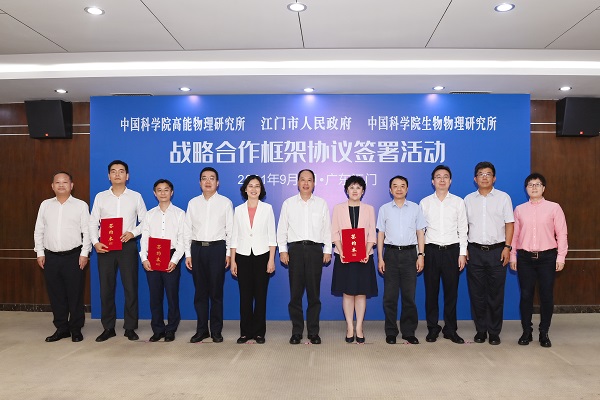 高能所副所長曹俊與江門市副市長鄭曉毅代表雙方簽署協(xié)議。江門市領(lǐng)導(dǎo)張元醒、馮一丁,高能所和江門市相關(guān)部門負(fù)責(zé)同志參加座談和簽約儀式。