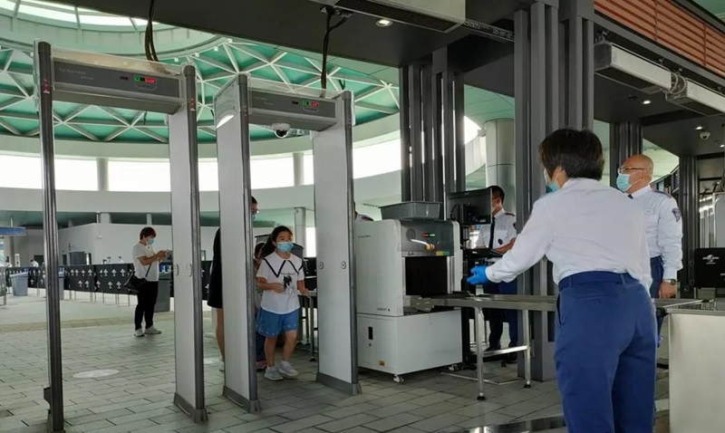 “世界眼光,國際標準,中國特色,高點定位”,北京環球度假區高起點規劃、高標準建設,要求同方威視安檢項目執行團隊高質量完成。同方威視與客戶緊密配合,不斷優化安檢運營流程,科學制定安檢方案和設備布局。在地鐵廣場,50臺套安檢設備沿頂部結構弧形擺放,使得設備和園區相映成趣。