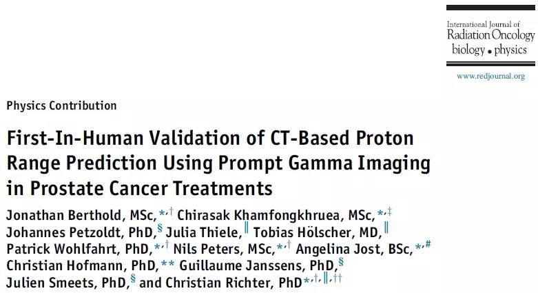 日前,來自德國德累斯頓OncoRay中心的研究人員,使用瞬發伽馬成像分析射程預測方法的準確性,是臨床基于CT質子射程預測的首次系統驗證。原文發表于紅皮雜志International Journal of Radiation Oncology, Biology, Physics。