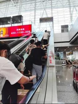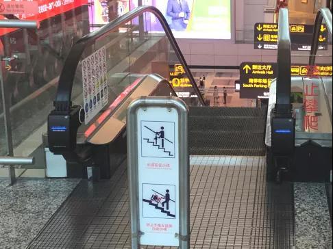 在一號航站樓,共有79臺自動扶梯,63臺自動步道,很多老年旅客、攜帶多件行李的旅客以及兒童旅客為了乘梯安全,在乘坐自動扶梯時都會緊握扶手帶。