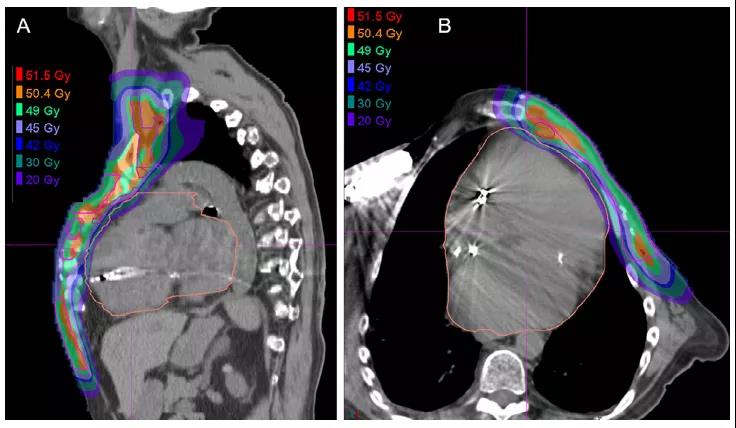 建議:對于乳腺癌放射治療中手臂必須是放下位置,且特別是RNI時,如果可行的話質子治療可能被認為是首選治療方案。如果可以,應考慮進行臨床試驗(LE 3, C級)。