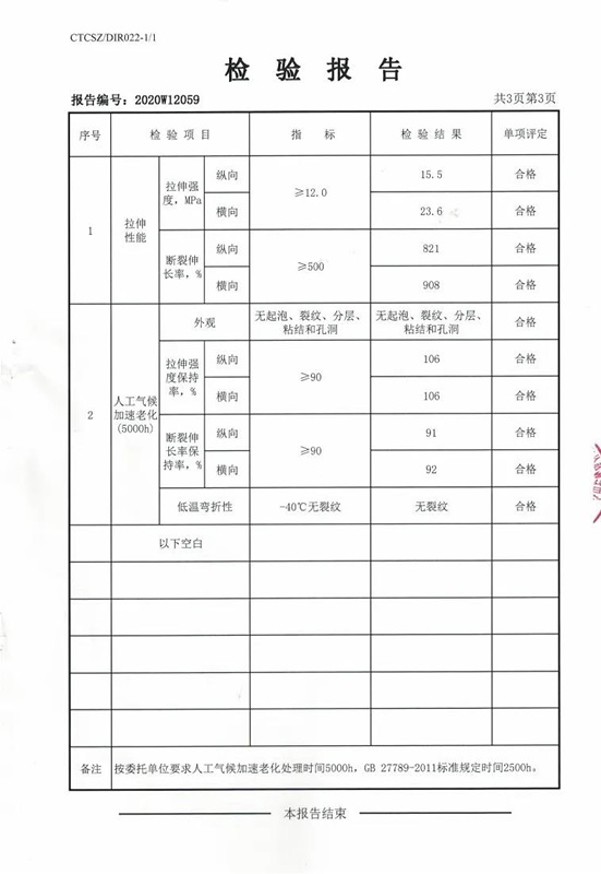 (2)耐候性、耐臭氧、耐久性、耐熱老化、耐穿刺性能優異。