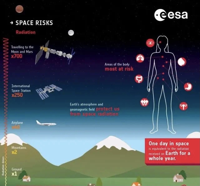 地球磁層保護(hù)我們免受有害宇宙射線的傷害,但在這個(gè)天然屏障之外,宇航員受到的輻射高達(dá)海平面的100倍。輻射風(fēng)險(xiǎn)是歐空局研究工作的焦點(diǎn),在去年舉辦了第一個(gè)“輻射暑期學(xué)校”培訓(xùn)學(xué)生,激發(fā)研究太空輻射對人類影響的新想法。年輕的學(xué)生接受了輻射物理和生物學(xué)的相關(guān)課程知識(shí)介紹,而且在歐洲各地歐空局的一些合作粒子加速器中進(jìn)行生物實(shí)驗(yàn)。