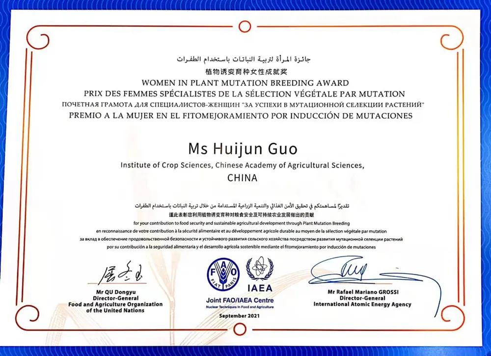 據悉,此次共有來自中國、日本、韓國、孟加拉、印尼、越南、巴基斯坦、南非等20個成員國的28個團體、個人或研究機構獲獎,包括11項團隊卓越成就獎、10項植物誘變育種女性成就獎和7項青年科學家獎,以表彰過去十年各國在推進農作物誘變育種及相關生物技術發展方面取得的重大成就。我國科學家囊括了三個獎項。