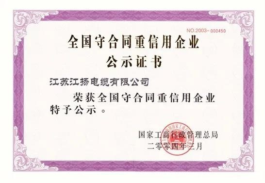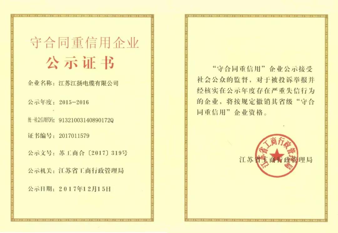 目前,江揚電纜成長為規模化經營的現代化集團企業,躋身于揚州市工業企業銷售30強、江蘇省科技百強企業和中國機械工業500強企業。公司先后被認定為江蘇省“重合同、守信用”企業,全國“守合同、重信用”企業和國家級重點高新技術企業。“江揚牌”產品被認定為江蘇省名牌產品,“江揚”商標被認定為江蘇省著名商標和中國馳名商標。